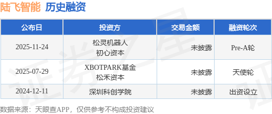 证券之星消息,根据天眼查APP于11月24日公布的信息整理,深圳市陆飞智能创新科技有限公司Pre-A轮融资,融资额未披露,参与投资的机构包括松灵机器人,初心资本。