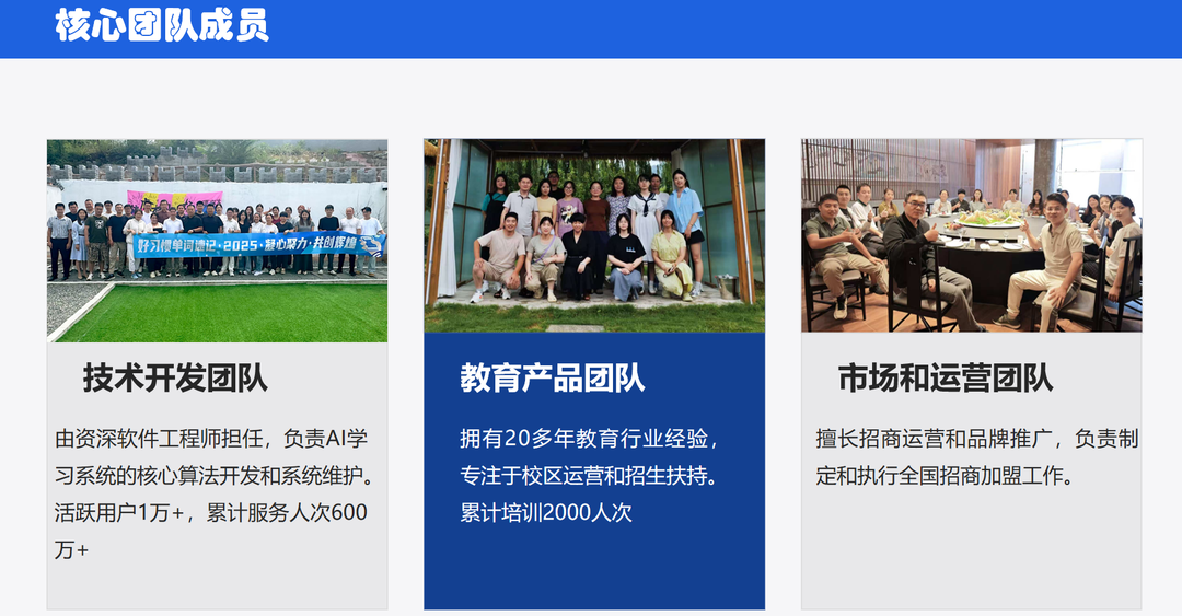 COO宗景振补充道:“我们的核心团队都来自学而思、新东方等顶尖教培机构,平均拥有10年以上教育行业经验,既懂教学规律,又懂技术创新。从2014年济南千佛山脚下的托管班,到2019年年营收2000多万的北京校推推平台,再到如今的AI自习室品牌,我们始终扎根教育一线,知道学生和家长真正需要什么。”